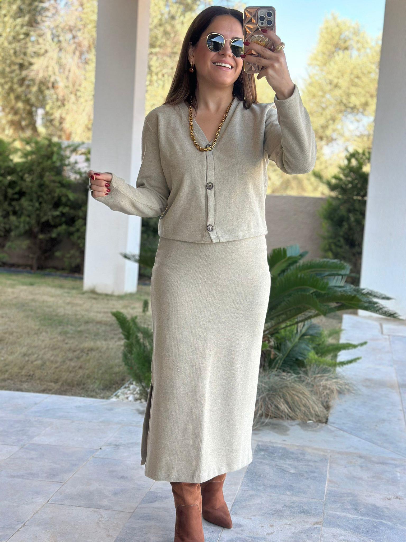 Düğme Detaylı Vizon Etek Takım
