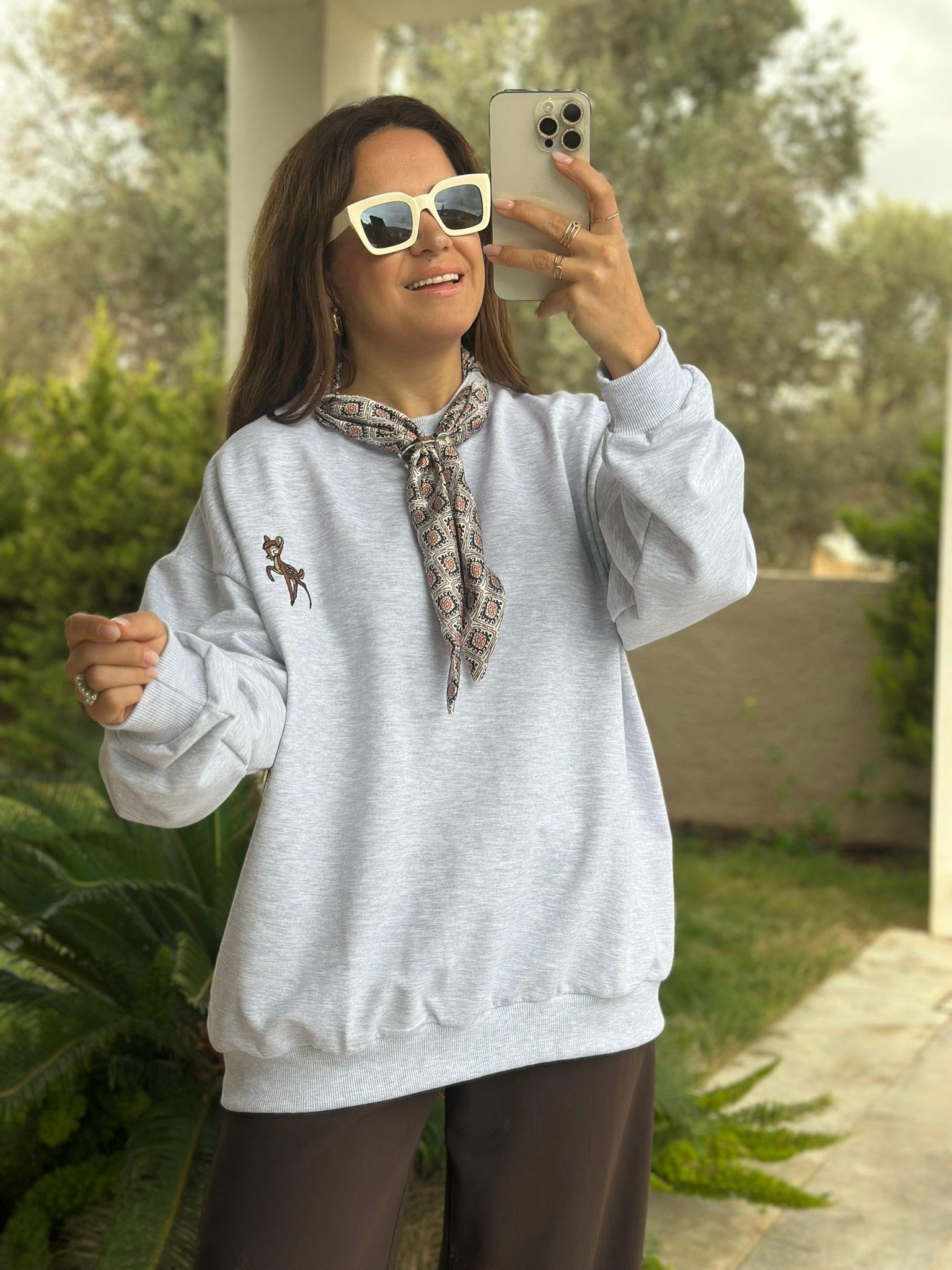 Fularlı Gri Swetshirt