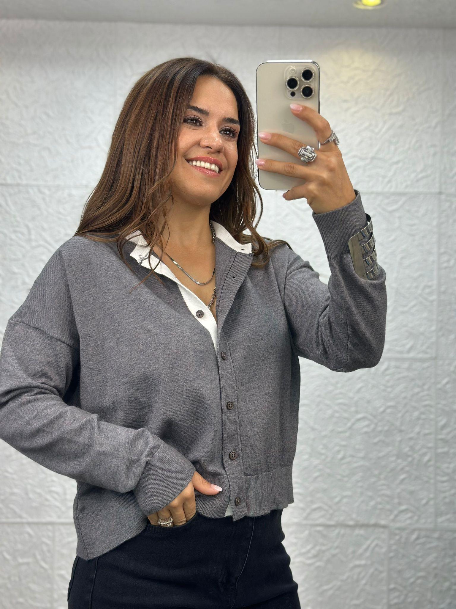 Gri Düğmeli Hırka