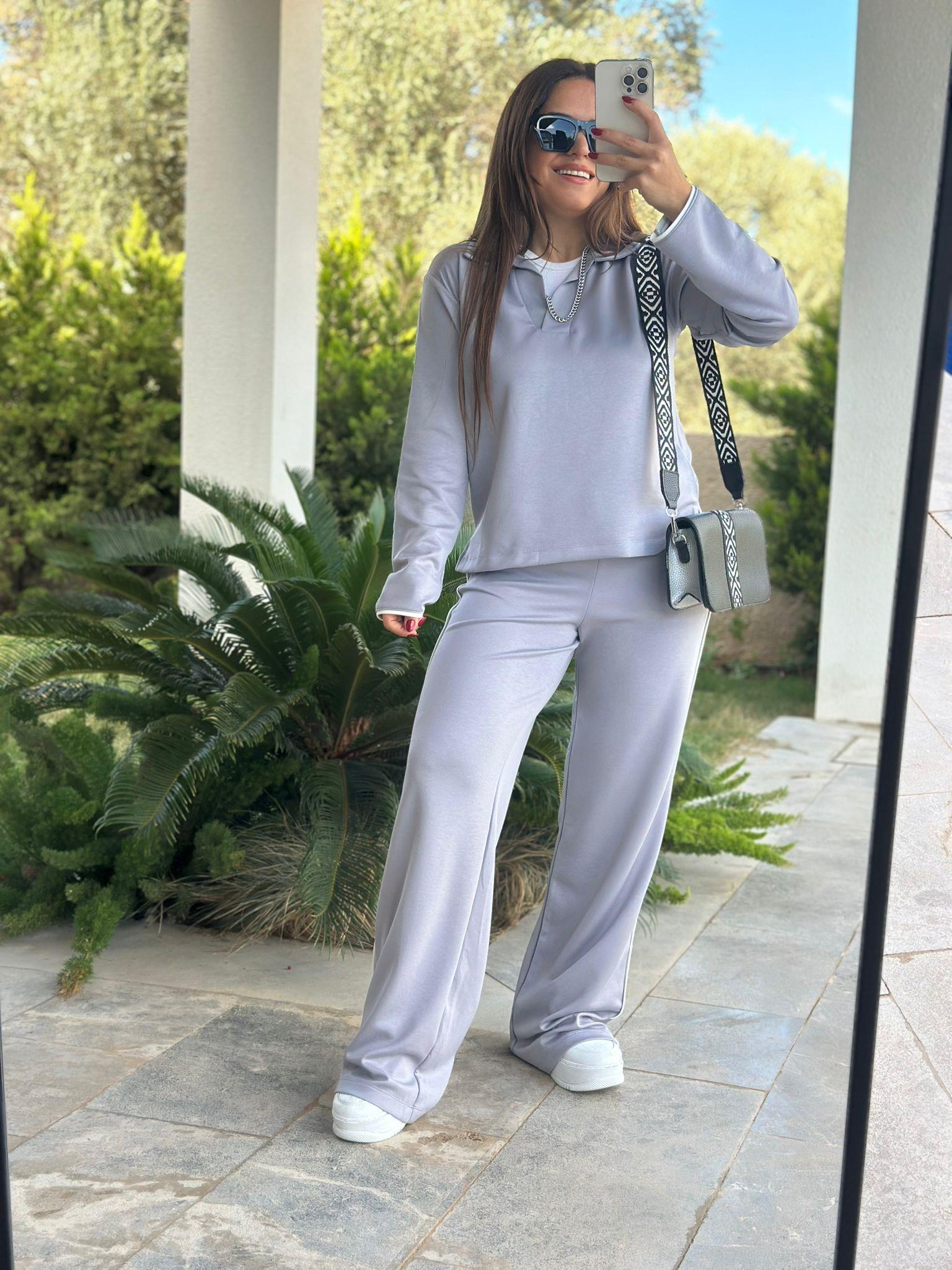 Gri Polo Yaka Modal Kumaş Eşofman Takım