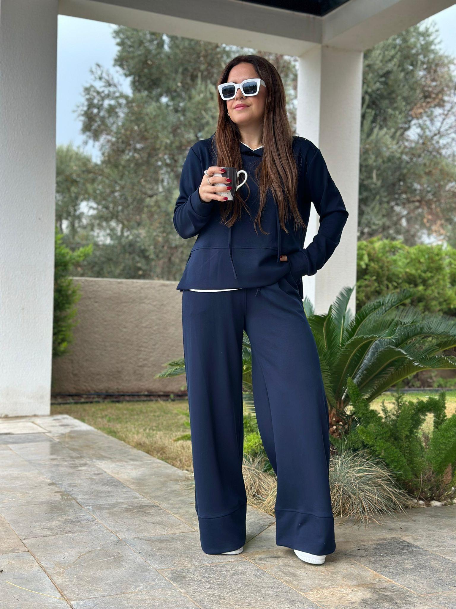Kapüşonlu Bol Paça Lacivert Eşofman Takım