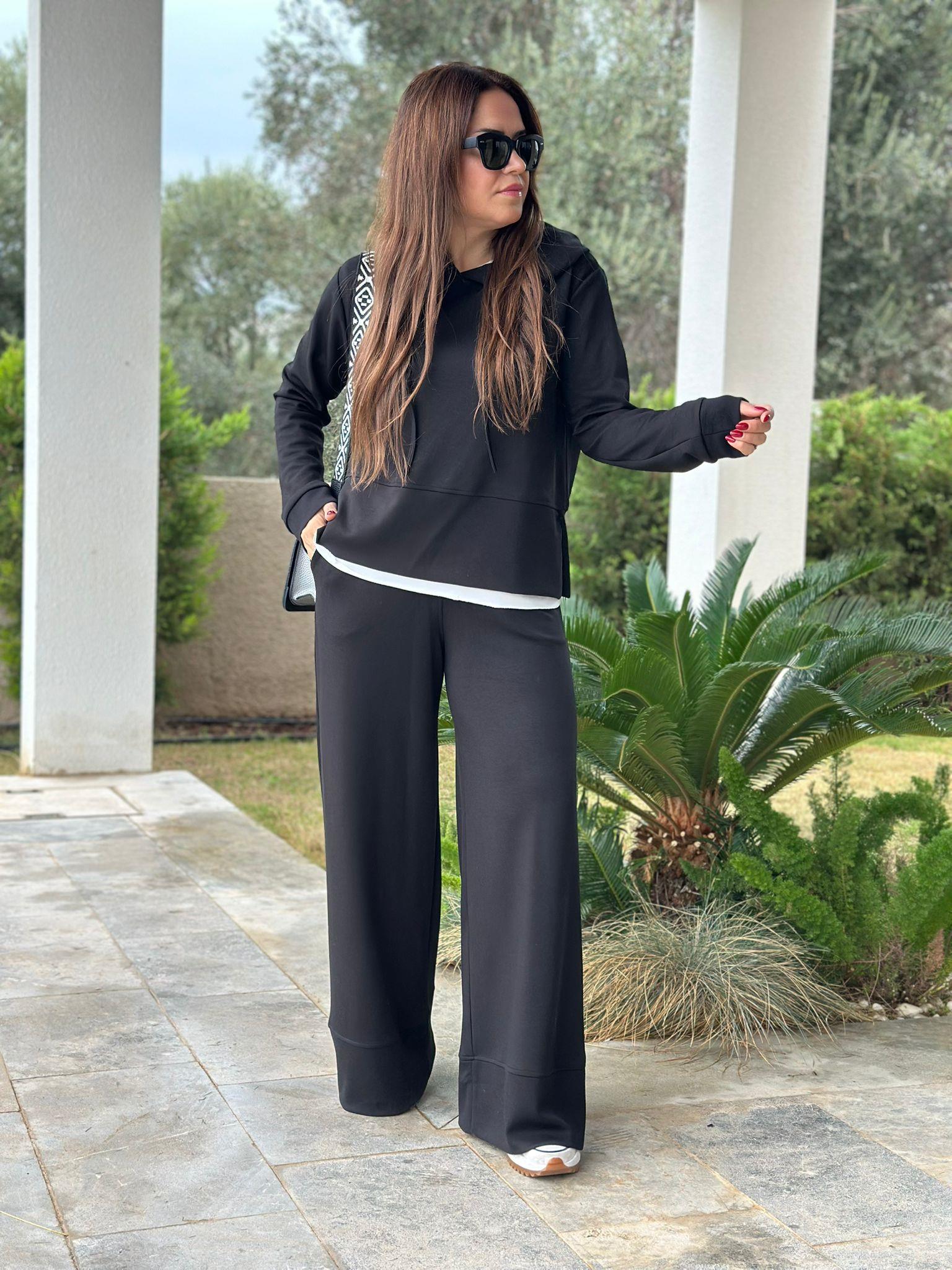 Kapüşonlu Bol Paça Siyah Eşofman Takım
