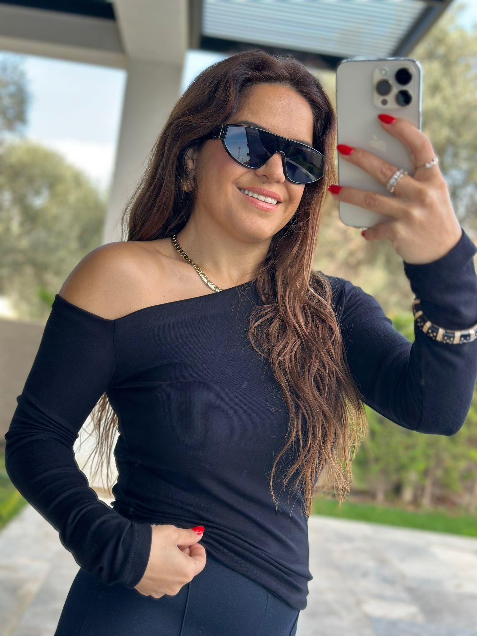 Kayık Yaka Siyah Bluz
